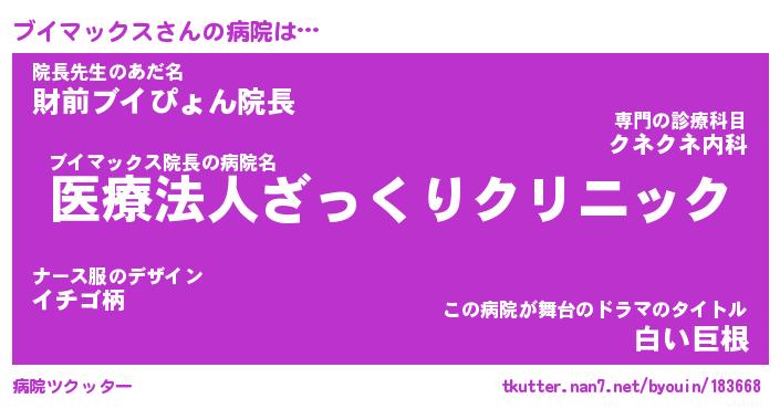 | 欧米人風あだ名 | 『マイケルブイマックス』 |