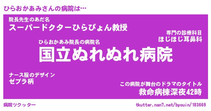 | 女子向けラノベタイトル風あだ名 | 『(仮)ひらおかあみのやんごとなき事情』 |