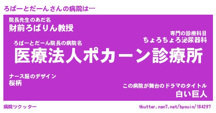 | 胡散臭い通販商品みたいなあだ名 | 『億万長者になれる水晶球…その名も「ろばーとだーん」』 |