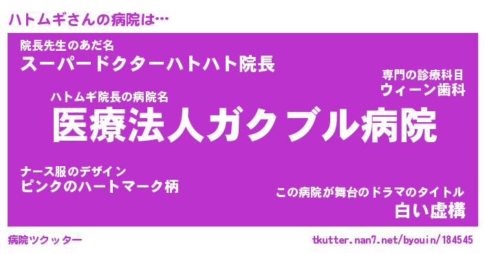 | ヘコむあだ名 | 『ハトにゅー』『牛乳』『ハトお』 |