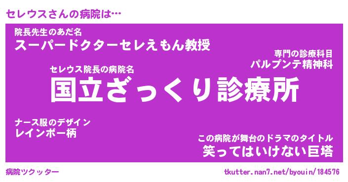 | 男性向けラノベタイトル風あだ名 | 『セレウスの憂鬱』 |