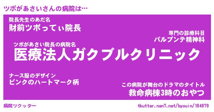 恥ずかしいあだ名 | 『プリティーツボがあさい』『ツボっちょ』 |