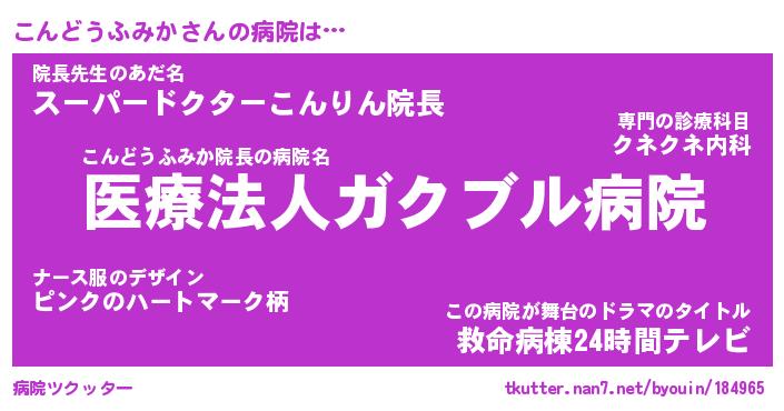 | 胡散臭い通販商品みたいなあだ名 | 『億万長者になれる水晶球…その名も「こんどうふみか」』 |