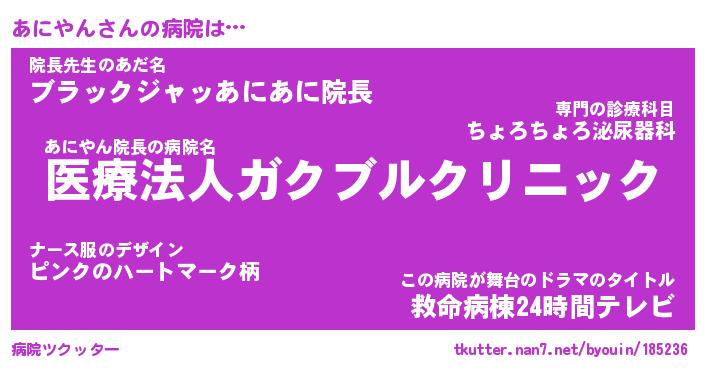 | 意味不明あだ名 | 『ペロリンあにやん』『永久保存あにやん』 |