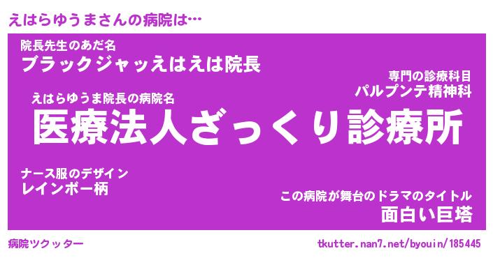 | 胡散臭い通販商品みたいなあだ名 | 『億万長者になれる霊験あらたかなお札…その名も「えはらゆうま」』 |