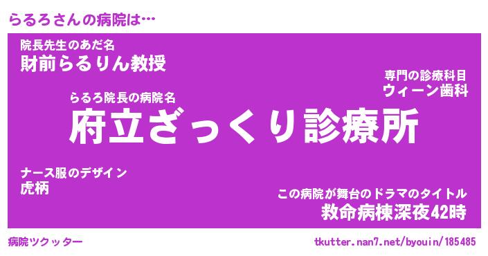 | ヒーロー風カッコイイあだ名 | 『スーパーラルロ』『ウルトラらるろマン』 |