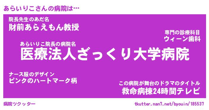 | 肩書あだ名 | 『あらいりこ御曹司』『あらいりこ大統領』 |