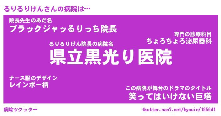 | 男性向けラノベタイトル風あだ名 | 『るりるりけんの憂鬱』 |