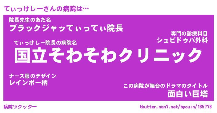 | 男性向けラノベタイトル風あだ名 | 『てぃっけしーの憂鬱』 |