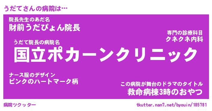 | ポケモン風あだ名 | 『ウダチュウ』『ウダテダネ』 |
