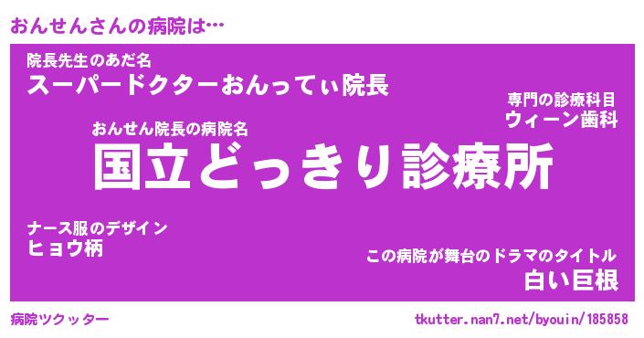 | 意味不明あだ名 | 『ペロリンおんせん』『永久保存おんせん』 |
