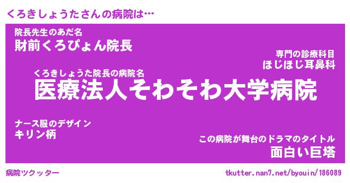 | 2回繰り返すあだ名 | 『くろくろ』『くくろろ』『おやおや』 |