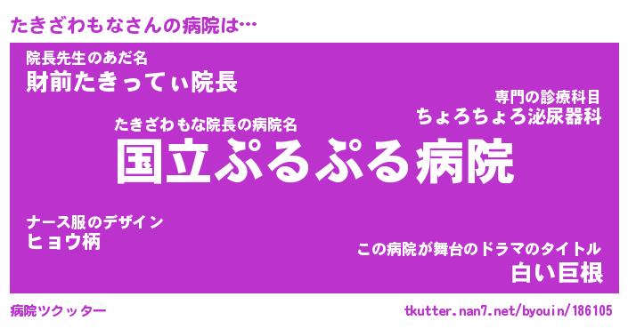| 恥ずかしいあだ名 | 『プリティーたきざわもな』『たきっちょ』 |