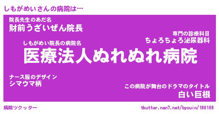 | 2回繰り返すあだ名 | 『しもしも』『ししもも』『ぬぷぬぷ』 |