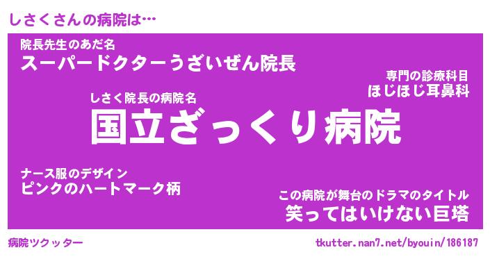 | 2回繰り返すあだ名 | 『しさしさ』『ししささ』『いらいら』 |