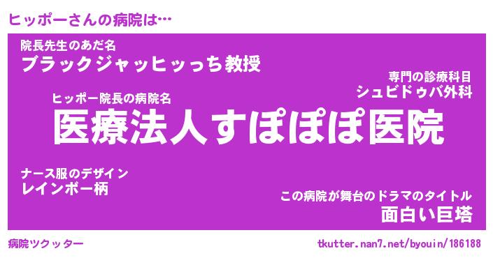 | 意味不明あだ名 | 『ペロリンヒッポー』『永久保存ヒッポー』 |