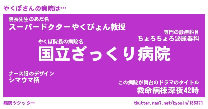 | ポケモン風あだ名 | 『ヤクチュウ』『ヤクボダネ』 |
