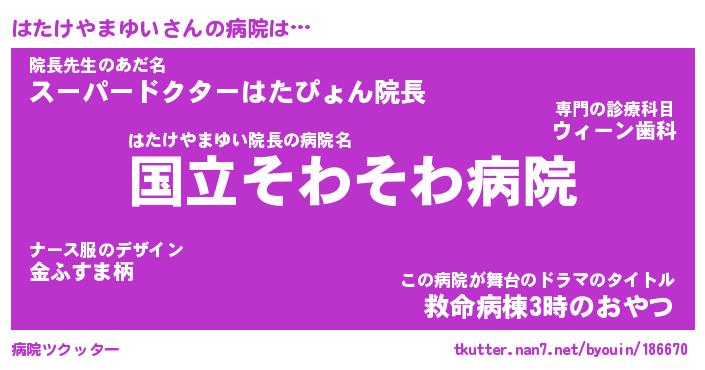 | ヒーロー風カッコイイあだ名 | 『スーパーハタケヤマユイ』 |