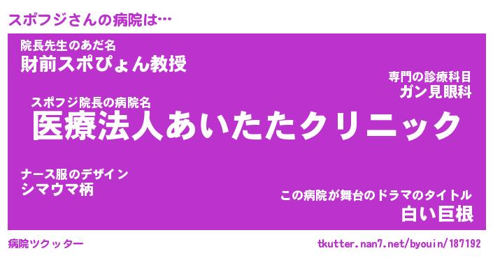 | 意味不明あだ名 | 『ペロリンスポフジ』『永久保存スポフジ』 |