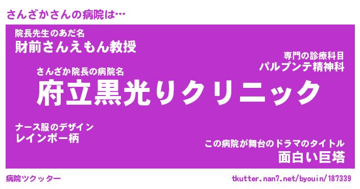 | 意味不明あだ名 | 『ペロリンさんざか』『永久保存さんざか』 |