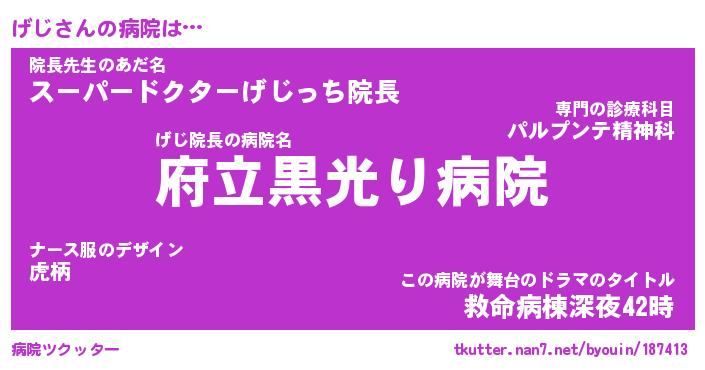 | 男性向けラノベタイトル風あだ名 | 『げじの憂鬱』 |