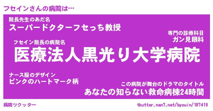 | ヒーロー風カッコイイあだ名 | 『スーパーフセイン』『暗黒騎士フセ』 |