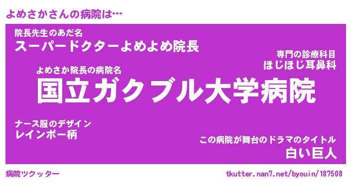| 2回繰り返すあだ名 | 『よめよめ』『よよめめ』『いそいそ』 |