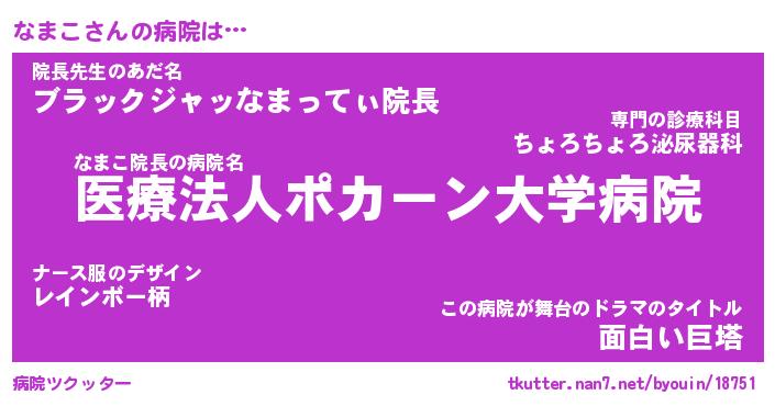 | ファンタジー風あだ名 | 『ナマフェル』『エターナルナマコー』 |
