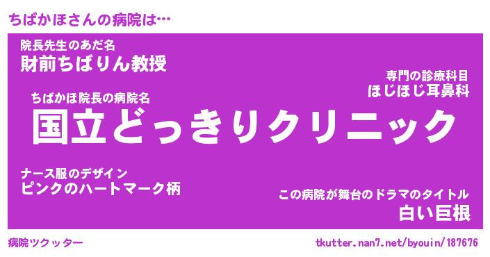 | 意味不明あだ名 | 『ペロリンちばかほ』『永久保存ちばかほ』 |