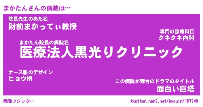 | 意味不明あだ名 | 『ペロリンまかたん』『永久保存まかたん』 |