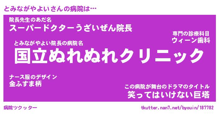 | ヘコむあだ名 | 『とみもー』『牛乳』『とみっ子』 |