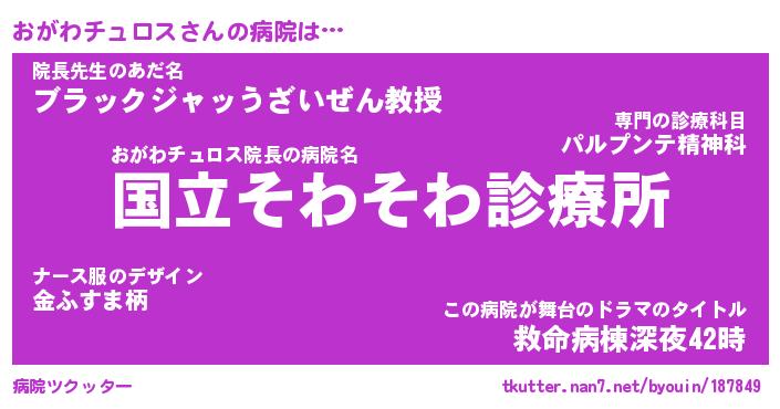 | 2回繰り返すあだ名 | 『おがおが』『おおがが』『いそいそ』 |