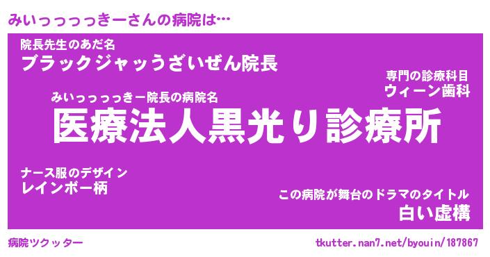 | 胡散臭い通販商品みたいなあだ名 | 『億万長者になれるブレスレット…その名も「みいっっっっきー」』 |