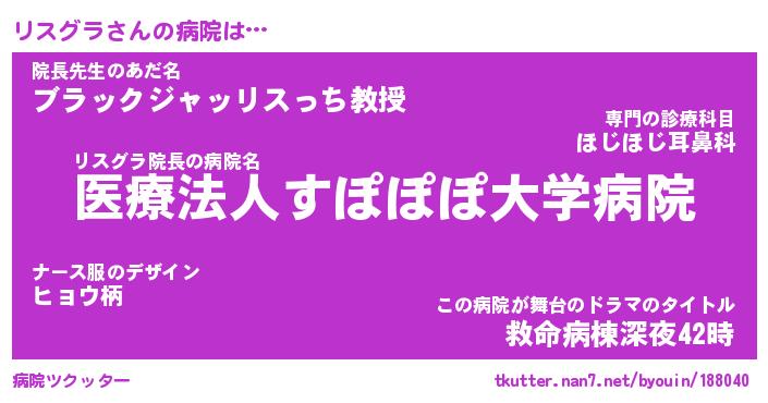 | 意味不明あだ名 | 『ペロリンリスグラ』『永久保存リスグラ』 |