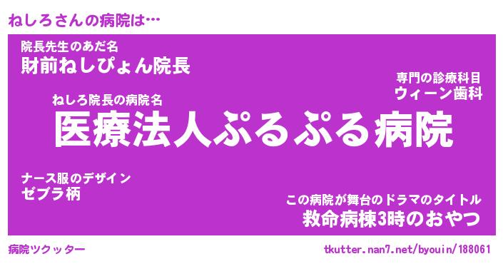 | 意味不明あだ名 | 『ペロリンねしろ』『ねしろフォーエバー』 |
