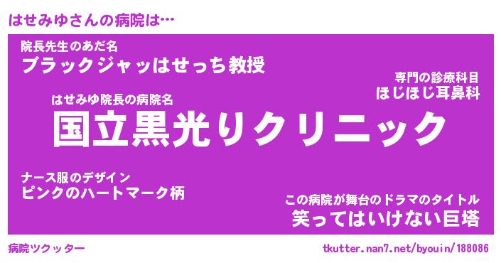 | 恥ずかしいあだ名 | 『プリティーはせみゆ』『はせっちょ』 |