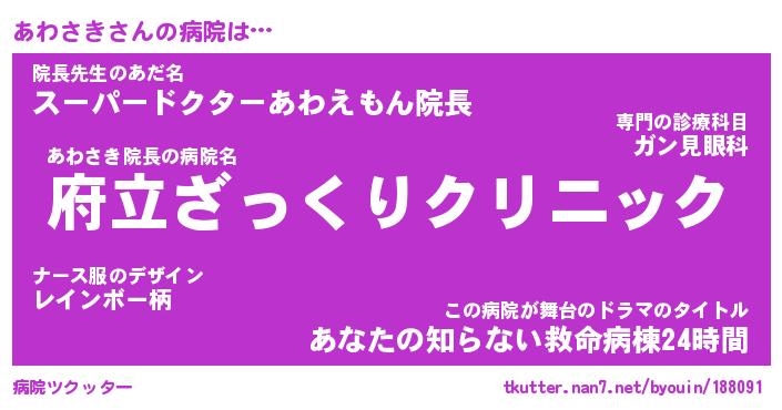 | 意味不明あだ名 | 『ペロリンあわさき』『永久保存あわさき』 |