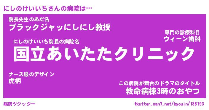 | 肩書あだ名 | 『にしのけいいち御曹司』 |