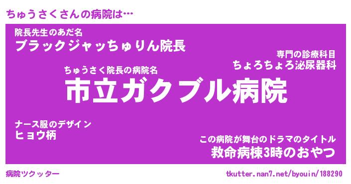 | 男性向けラノベタイトル風あだ名 | 『ちゅうさくの憂鬱』 |