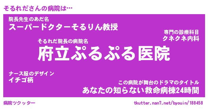 | 意味不明あだ名 | 『ペロリンそるれだ』『永久保存そるれだ』 |
