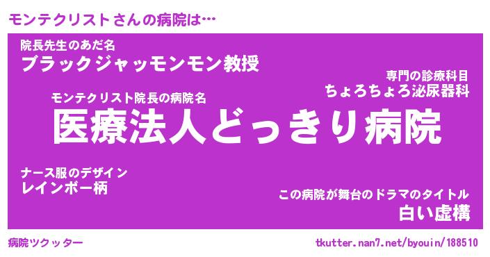 | 自動車の名前っぽいあだ名 | 『モンティマ』『モスラー』『モント』 |