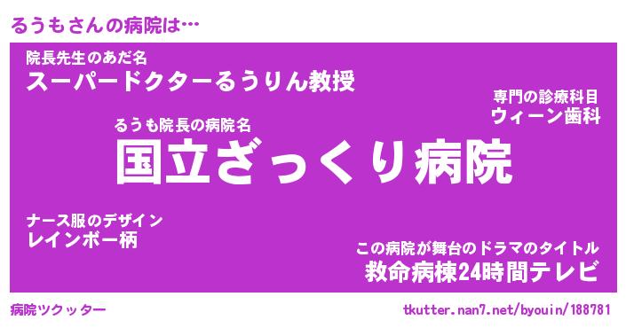 | 2回繰り返すあだ名 | 『るうるう』『るるうう』『いらいら』 |