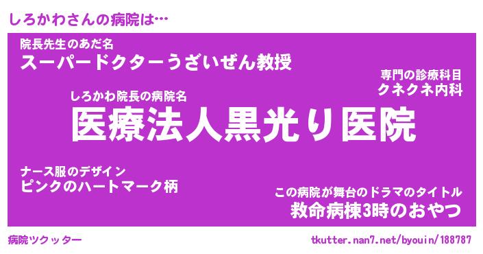 | ヒーロー風カッコイイあだ名 | 『スーパーシロカワ』『暗黒騎士シロ』 |