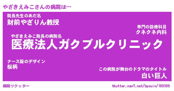 | 肩書あだ名 | 『やざきえみこ店長』『やざきえみこ団長』 |