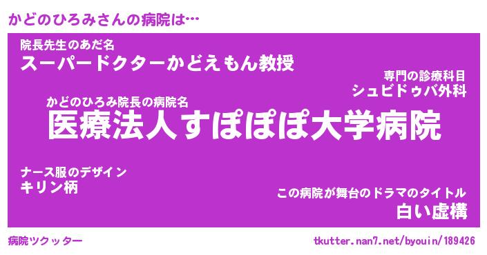 | ヘコむあだ名 | 『かどもー』『牛乳』『かどぷりん』 |