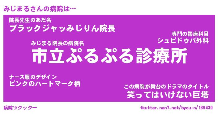 | 男性向けラノベタイトル風あだ名 | 『みじまるの憂鬱』 |