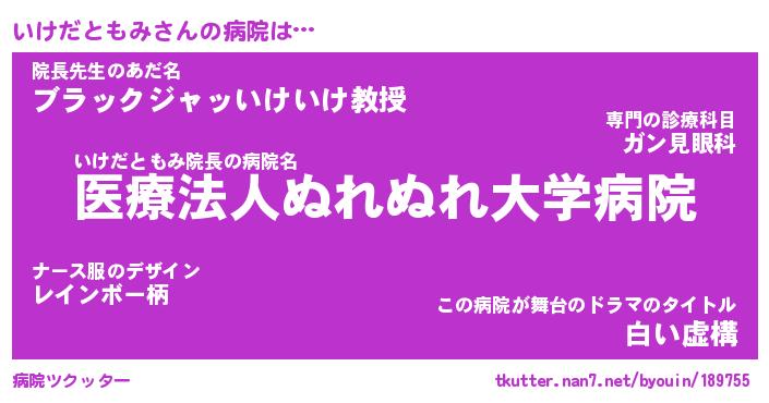 | ヒーロー風カッコイイあだ名 | 『スーパーイケダトモミ』『銀牙騎士イケ』 |