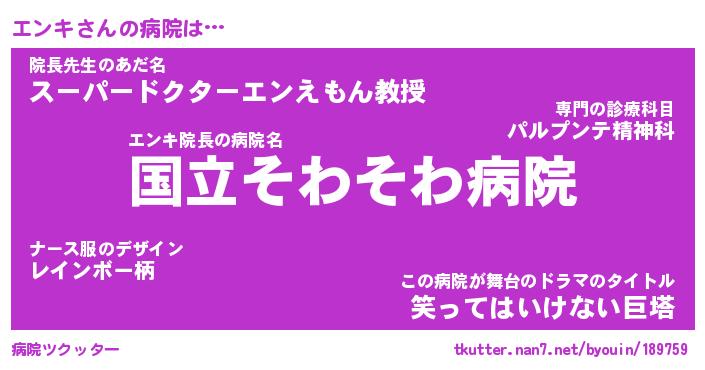 | 2回繰り返すあだ名 | 『エンエン』『エエンン』『うねうね』 |