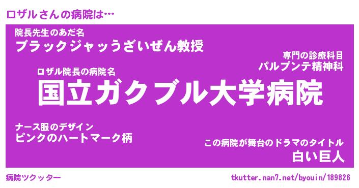 | ヘコむあだ名 | 『ロザにゅー』『なまこ酢』 |