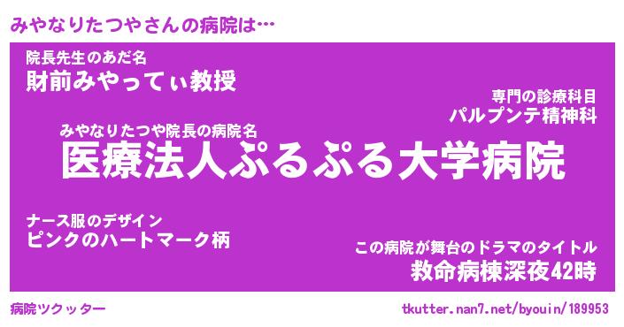 | 肩書あだ名 | 『みやなりたつや店長』 |